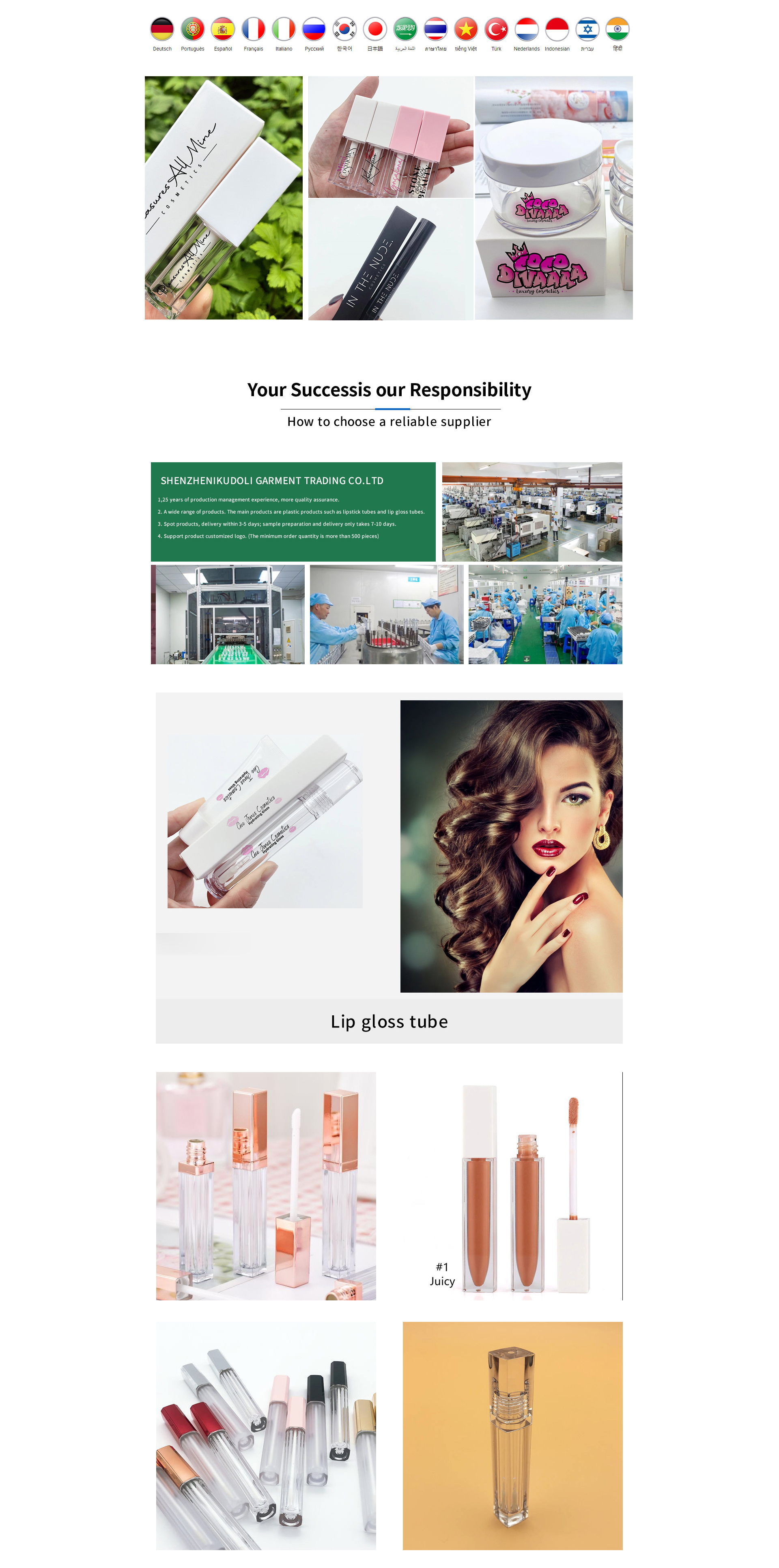 Principais produtos:Cosméticos, produtos de beleza e cosméticos, tubo de brilho labial, tubo de cílios, delineador